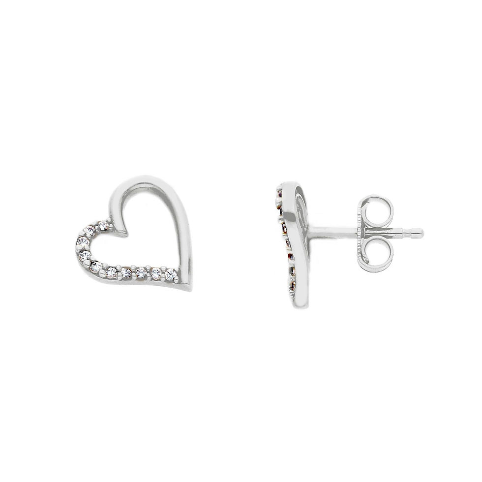 Oro 18 kt - ORECCHINI OB CON ZIRCONI CUORE - ORO BIANCO