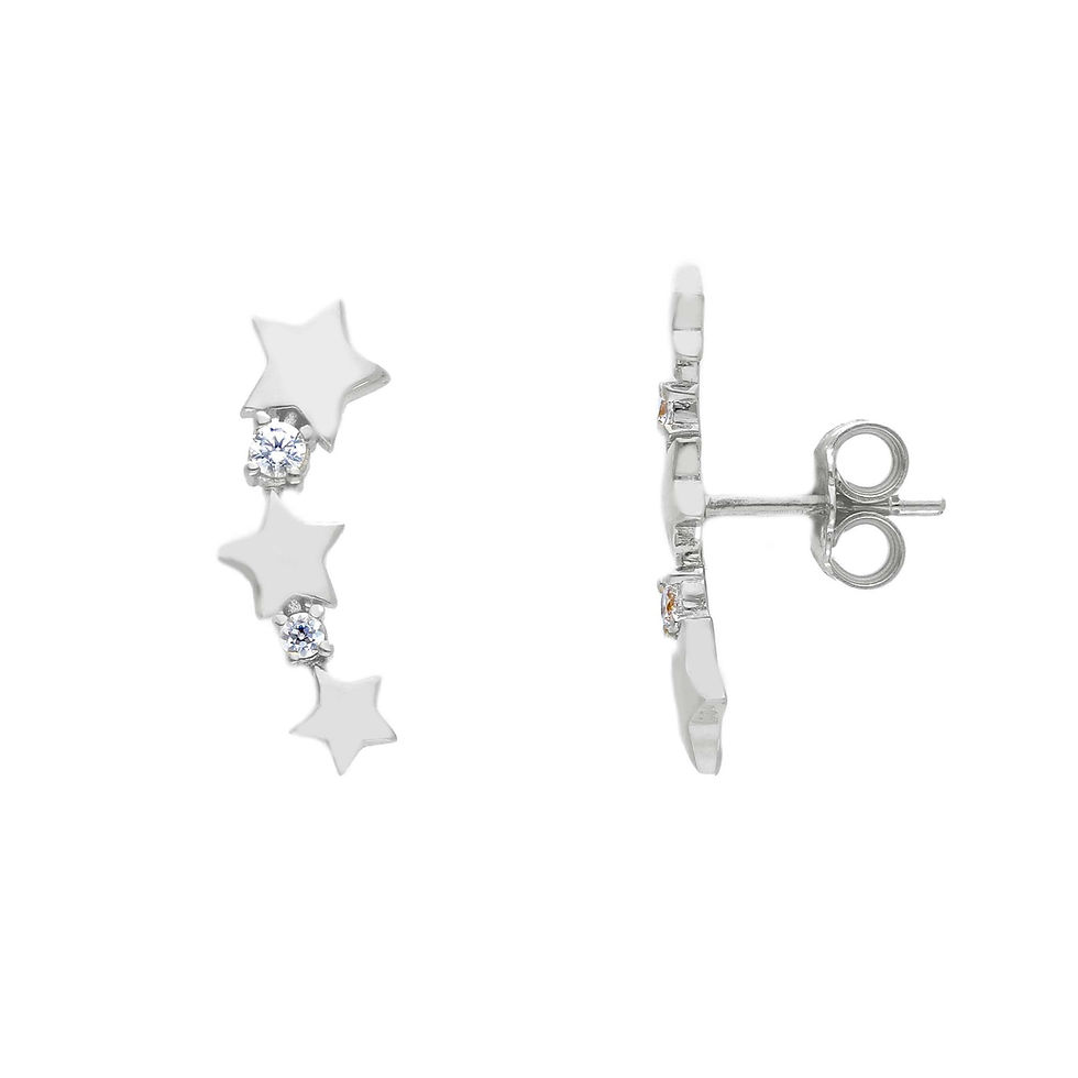 Oro 18 kt - ORECCHINI OB STELLE CON ZIRCONI - ORO BIANCO