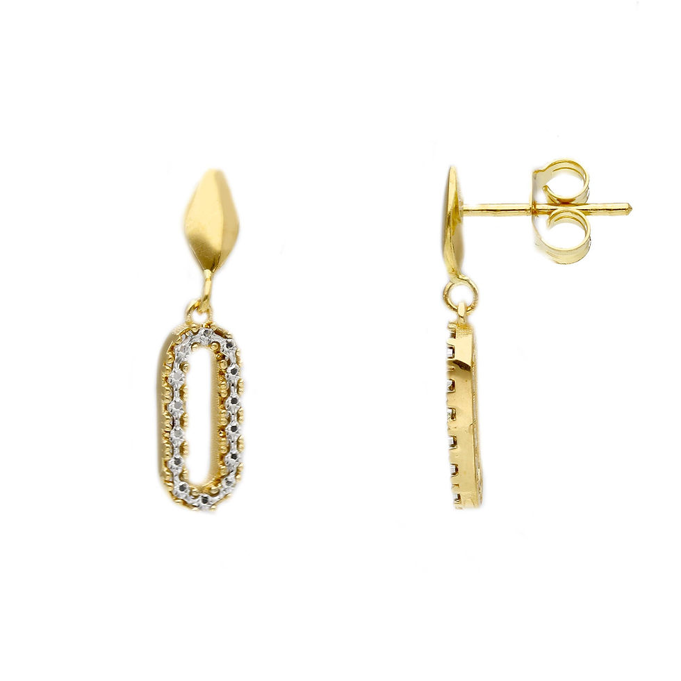 Oro 18 kt - ORECCHINI OGB ROMBO DIAMANTATO RETRO SATINATO - ORO GIALLO E BIANCO